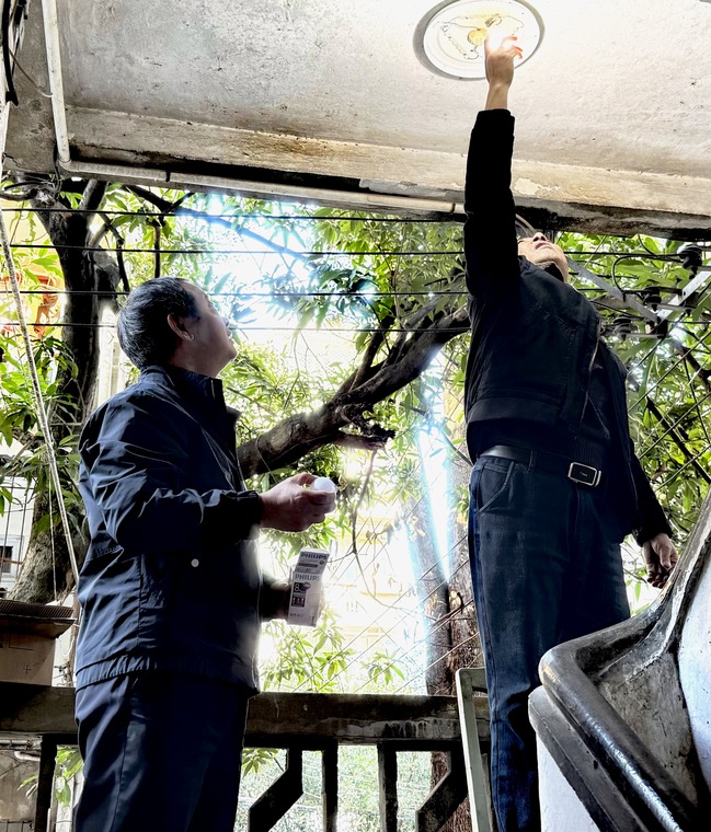 活动前,党支部已提前梳理仓山生活区各楼栋梯间照明设施的损坏情况,制订详细维修方案,筹备好灯泡、开关、电线等维修物资及工具。活动现场,党员志愿者分工明确、协作高效,迅速投入维修工作。他们逐层逐户对梯间照明灯具、线路进行全面排查,针对灯具损坏老化等问题,逐一开展更换配件线路、调试开关。维修过程中,志愿者们始终秉持严谨细致的态度,不放过任何一处安全隐患,同时主动与过往业主沟通交流,倾听大家对居住环境提升的意见建议,耐心解答相关疑问。